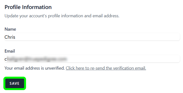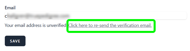 Note: If you update your email you will receive a verification email to the new address. If you need the verification email resent, you can use the link under the Email field.